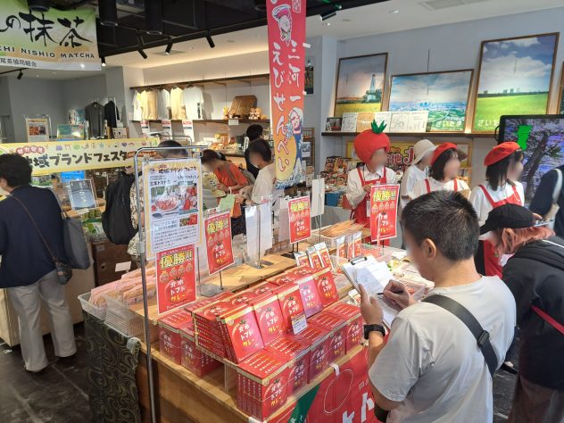 8月30日・31日の2日間、「地域ブランドフェスタ」を開催しました。猛暑の中、全国12団体が誇る地域ブランド商品が集結し、館内は終日賑わいを見せました。初めて見る商品に興味を持ち、ゆっくりとご覧になる来場者も多く、出展者による丁寧な接客が好評でした。館内では、地域団体商標制度のPRを兼ねたクイズやアンケートを実施。ファミリー層を中心に多くの方が参加し、エコバッグなどのプレゼントも好評でした。試食コーナーでは、焼肉やカレーの香りが食欲をそそり、松阪鶏焼肉のたれや北本トマトカレーなどが完売するなど、販売にも大きく貢献しました。2日間を通じて、地域ブランドの魅力を多くの方に発信できた充実のイベントとなりました。ご来場ありがとうございました!