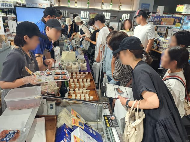 9月6日(土)・7日(日)の2日間、豊かな自然と人の営みが育んだ留萌エリア8市町村の美味しいグルメが勢揃いしたイベントは、台風一過の晴天の中、たくさんのお客様でにぎわいました。館内は旅行気分を味わえる雰囲気で、試食・試飲・試供品のプレゼントも盛りだくさん!北海道出身のお客様がスタッフと懐かしい話で盛り上がる場面もあり、甘酒やトマトジュースなどの人気商品が次々と売れていきました。特に「カズチー」や「とままえメロン」は大人気で完売!国稀純米吟醸も試飲もあり24本が完売するなど、嬉しい反響が続きました。