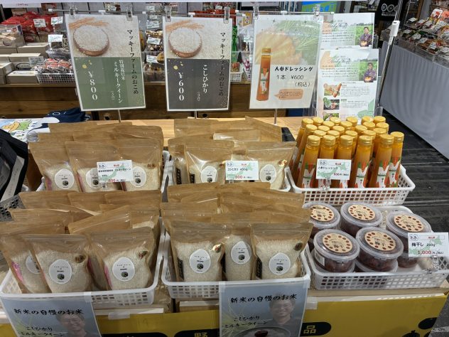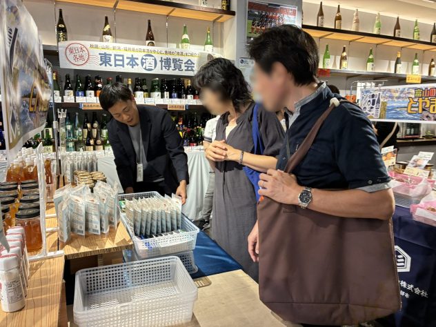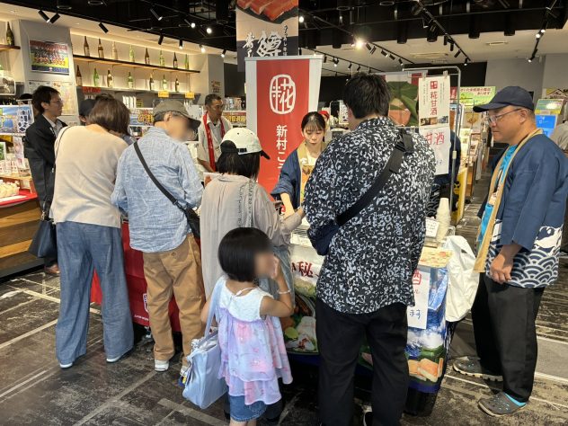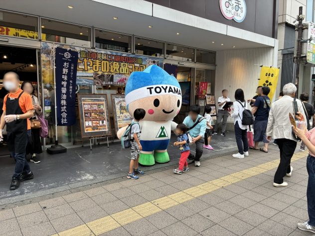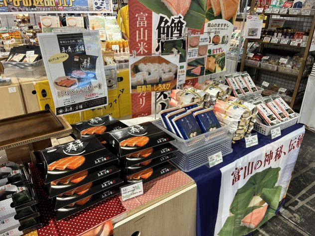 初日は開店前からお並びいただく方もいて、富山湾の恵みを活かした”昆布じめ”や”鱒ずし”、新米コシヒカリなど、富山ならではの味覚が大人気。白えび寿司はお昼には完売するほどでした。店頭には富山のマスコットキャラクター「きときと君」の着ぐるみも登場し、お子様連れのお客様で賑わいました。甘酒やはちみつ、白えびのたまごかけ醤油の試食・試飲も好評で、事業者の方と会話を楽しみながらお買い物いただけました。2日目は新米コシヒカリの試食も実施し、炊き立ての香りに誘われて多くの方が足を止めてくださいました。アンケートやノベルティのエコバッグも大好評で、2日間で160個があっという間に終了!