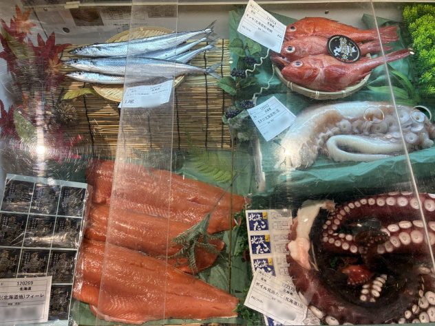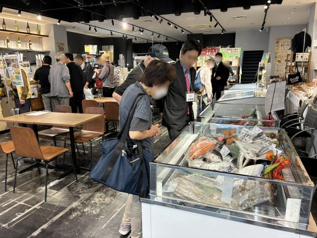 この商談会は、市内飲食店及び関連事業者様向けに東日本各地の食材を紹介することを目的としたもので、今年度1回目となる今回は「北海道フェア」と題し、道産の鮮魚・魚加工品・肉類・野菜など選りすぐりの逸品を展示しました。