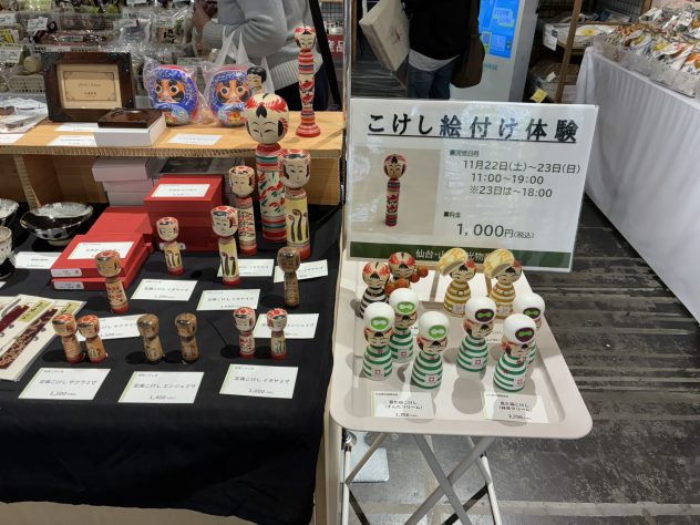 2Fでは伊達武将隊の片倉小十郎景綱&支倉常長によるステージショーや、山形大学・花笠サークル「四面楚歌」による花笠音頭の披露など華やかなステージが開催され、幅広い世代のお客様に楽しんでいただき、こけし絵付け体験は家族連れで賑わいました。