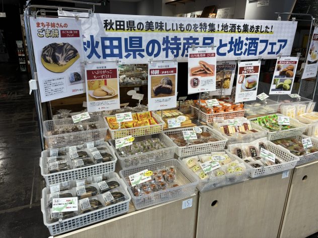 1月22日~25日まで開催した「秋田県の特産品と地酒フェア」。晴れ間が広がる時間もありましたが、空気はキリッと冷たく、まるで秋田の冬がそのままやってきたような4日間でした。そんな中でも、多くのお客様が足を運んでくださり、館内はいぎわいました。まず人気だったのは、やっぱり“お米どころ秋田”ならではのお餅たち。「まちこ姉さんのごまもち」や「バター餅」は、女性のお客様から「懐かしい味がする」「ちょっと小腹にいいね」と好評。