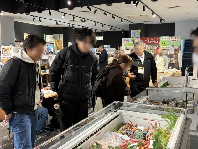 この商談会は、市内飲食店及び関連事業者様向けに東日本各地の食材を紹介することを目的としたもので、今年度3回目となる今回は「日本海フェア」と題し、福井県・石川県・新潟県の鮮魚・魚加工品・肉類・野菜など選りすぐりの逸品を展示しました。