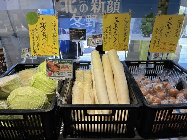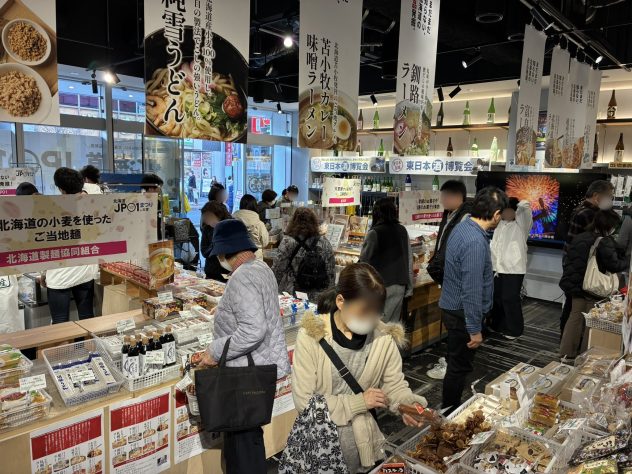 野菜コーナーでは、越冬きゃべつや冬が旬の知内町産「しりうちにら『北の華』」、果実のような甘みの「雪の下だいこん」が人気で、希少なコーングリッツを使った「とうもろこしのスコーン」や、モチモチ食感の「道産小麦パスタ」は女性のお客様に大好評でした 。また、自分へのご褒美スイーツとして「北海道バターリッチ」を購入される方も多く、会場は賑わいました。