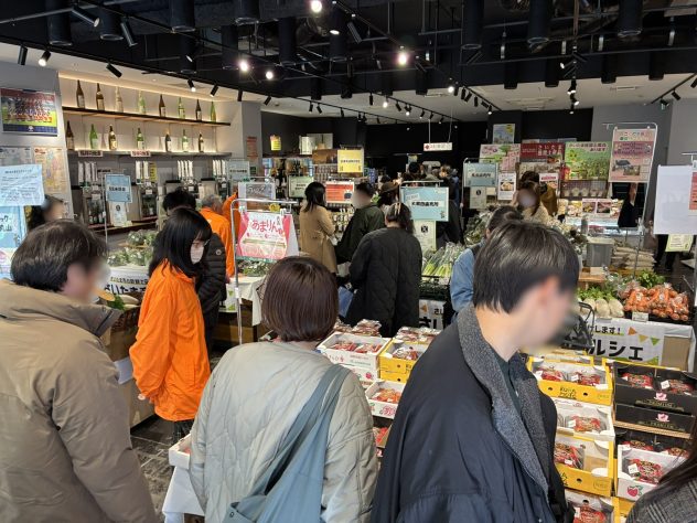 会場では、インスタグラムでも話題の「にんにくヤンニョム」と「生きくらげ」のコラボ試食も実施。ピリ辛で奥深い味わいに、思わず「これ美味しい!」と笑顔がこぼれます。また、2,000円以上お買い上げの方にプレゼントされた「つながるヌゥ」のトートバッグも、「可愛い!」と女性のお客様に大好評。エコバッグとして早速使ってくださる方も多く、地産地消の輪が広がる温かい一日となりました。