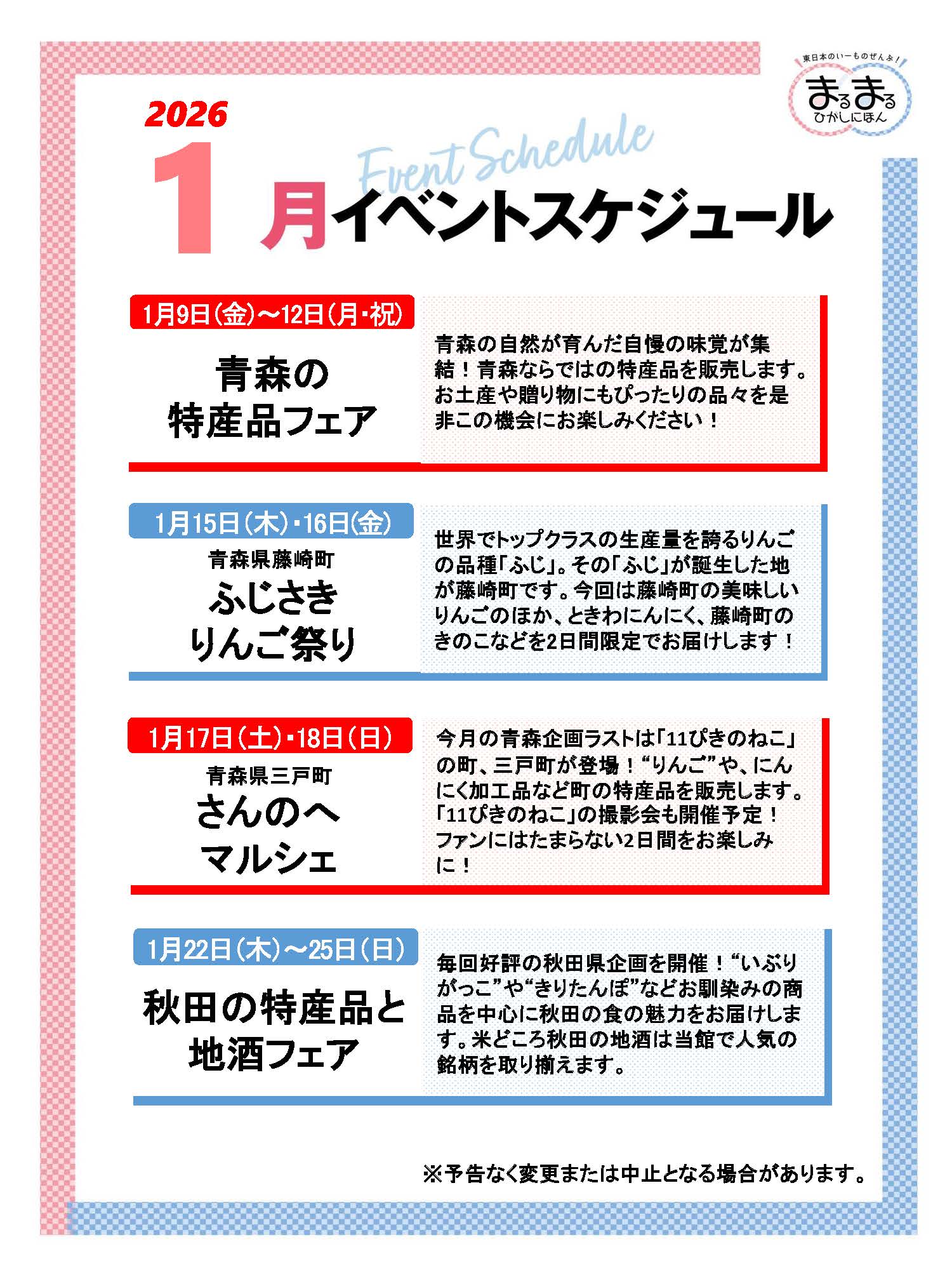 1月も、まるまるひがしにほんでは様々な東日本の魅力発信イベントを開催いたします!