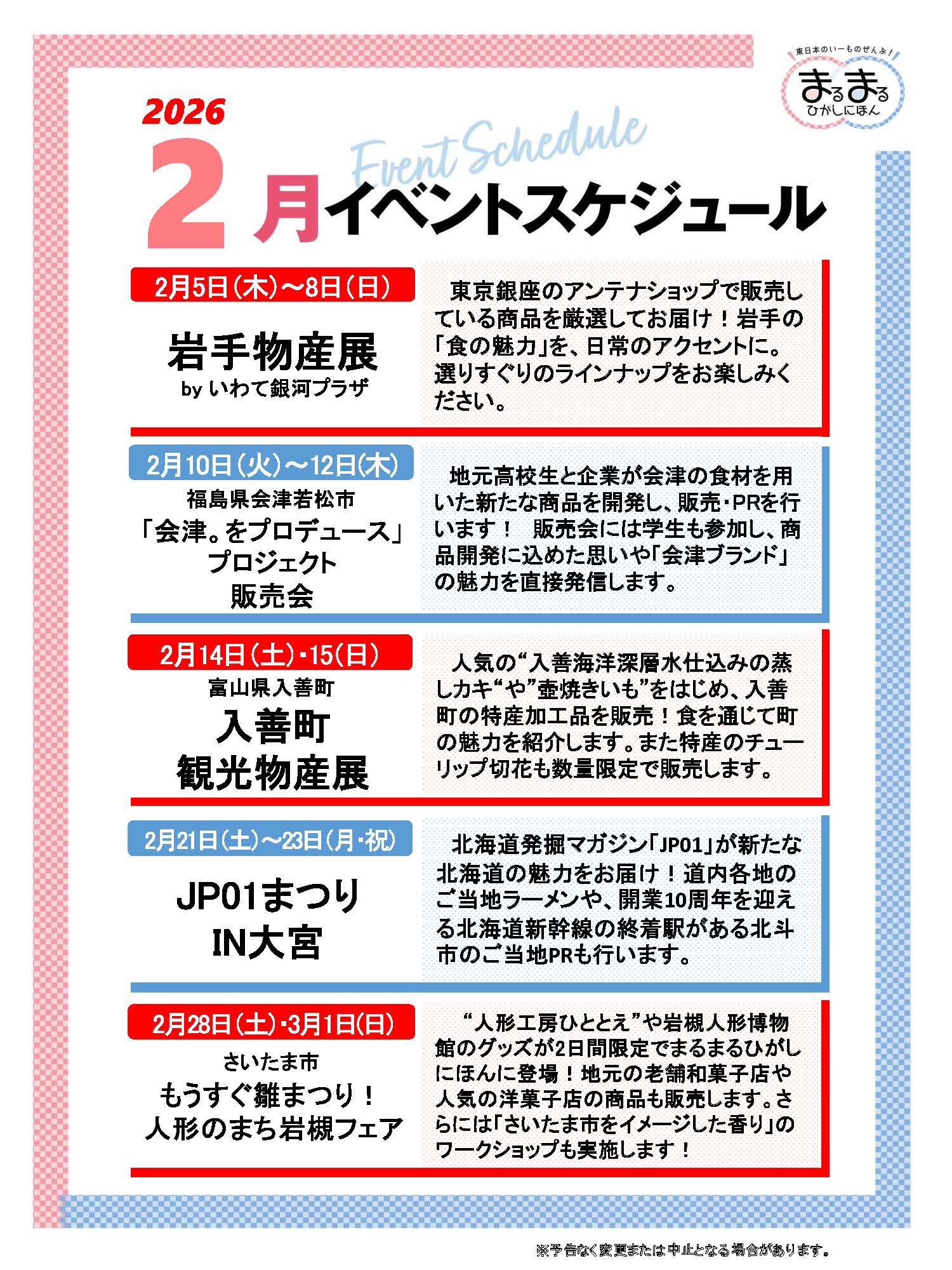 2月も、まるまるひがしにほんでは様々な東日本の魅力発信イベントを開催いたします!